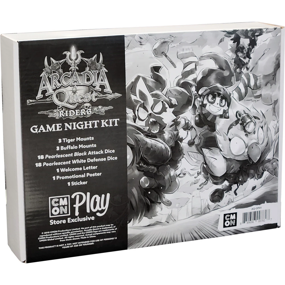 This kit is designed for Arcadia Quest and the Riders expansion. It is full of exclusive items ready to be quested for your your players. The kit can handle 2-8 players. For 2-4 players, you will need one copy of Arcadia Quest and one copy of Riders. For 5-8 players, you will need copies each of the base game and expansion.