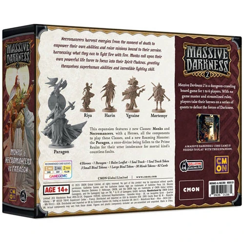 This expansion features 2 new Classes: Monks & Necromancers, with 4 Heroes, all the components to play these Classes, and a new Roaming Monster: the Paragon, a once-divine being fallen to the Prime Realm for their utter intolerance for mortal kind’s countless faults.