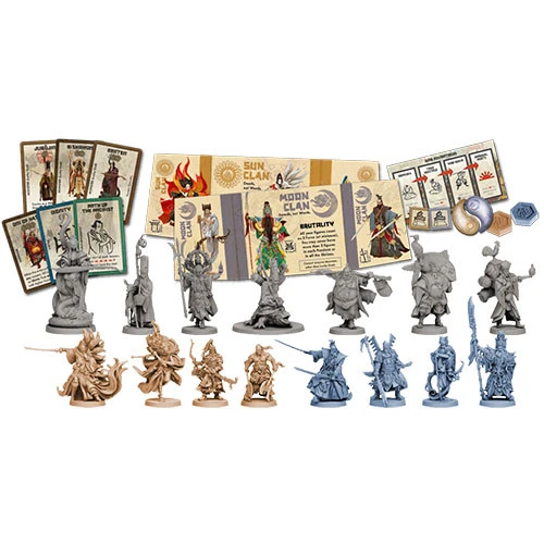 The Dynasty Invasion expansion introduces two new Clans to the game, allowing you to play Rising Sun with up to 6 players at the same time! The Sun Clan and the Moon Clan each possess their own unique abilities and beautifully detailed miniatures. Moreover, these Clans do not employ the normal Monsters, relying instead on their own Seven Lucky Gods. These avatars of virtue aid them in different ways, bringing new twists to the game.