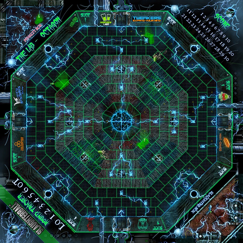 A gothic arena broods at the heart of the Wallachian Metroplex: The Lab. Massive generators shoot lightning into the gloomy sky and into the arena itself! Random bolts of electrical doom arc across the pits, posing dreadful hazards that can stagger even the mighty butchers.