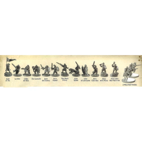 Players take the role of the various factions in the war, or of some of the supernatural creatures that have emerged from the shadows. The most famous heroes and heroines of the war are all here: the Black Prince, the Dauphin, Falstaff, and, of course, Joan of Arc herself. Each game is a unique scenario with its own map assembled from the gaming tiles, and a specified set of heroes and followers to achieve the scenario’s objectives. Each scenario has its own victory conditions, often different for each side. In one game you may be an inquisitor, seeking out a werewolf hidden among the peasantry; in another you may be a victorious raiding party, desperately fighting your way through an ambush so you can return to the safety of your castle.